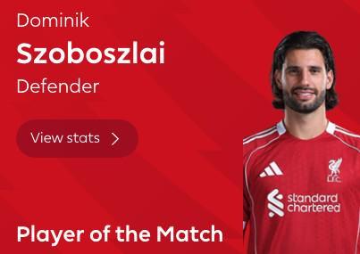 此役主场对阵热刺,首发出战的索博斯洛伊在比赛第18分钟主罚任意球破门,帮助利物浦取得1-0领先,最终球队1-1战平对手。
