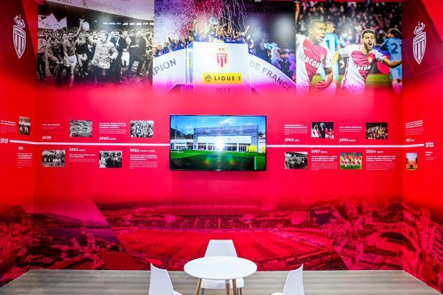 11月8日,上海国家会展中心,消解掉时差和距离的摩纳哥足球俱乐部,来到了中国球迷和中国足球的眼前。除了简约时尚的队徽标识,以及大屏幕滚动播放的俱乐部全新品牌理念——“Rise. Risk. Repeat.” (崛起. 无畏. 矢志不渝.),摩纳哥足球俱乐部还通过展区的巨型挡板,呈现了不少珍贵的照片和球队历史的片段: